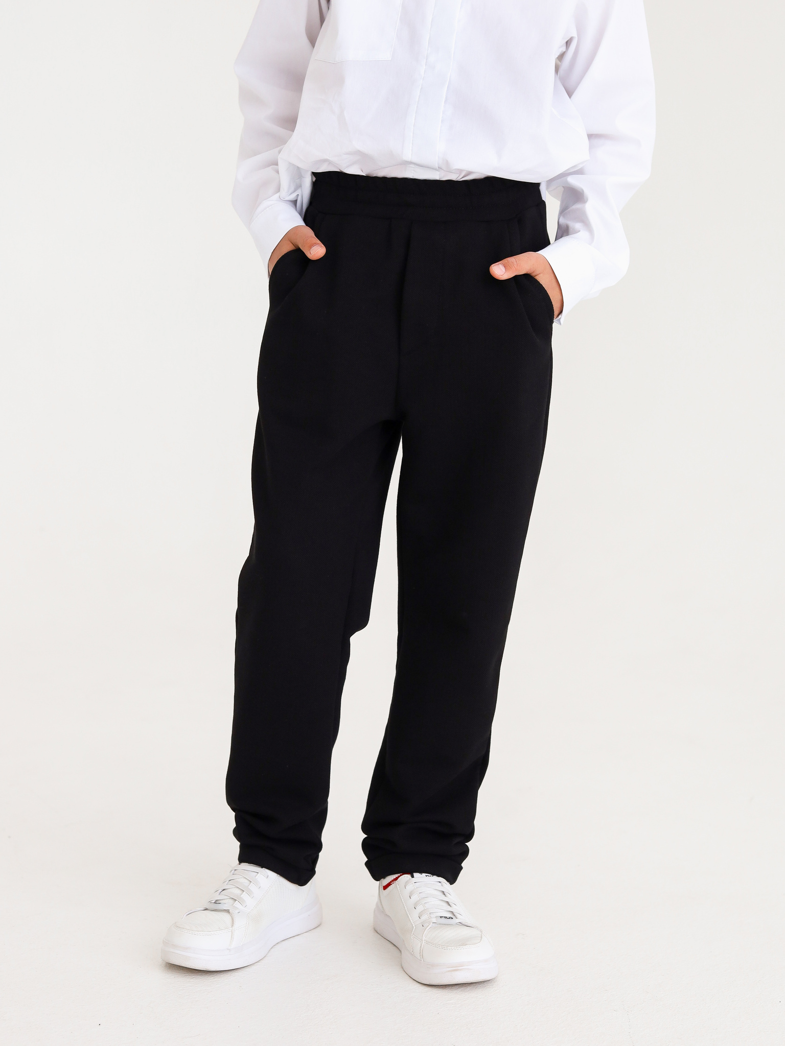 Брюки из трикотажа из стильной текстурованной ткани пике, с объемным верхом и зауженные к низу, с двумя защипами. Два кармашка спереди. Они отлично садятся на любую фигуру. Натуральный состав брюк подарит комфорт и удобство. А преимущество трикотажа в классических моделях многие уже давно оценили - не нужно наглаживать стрелки и носить их в химчистку, в уходе они очень просты.