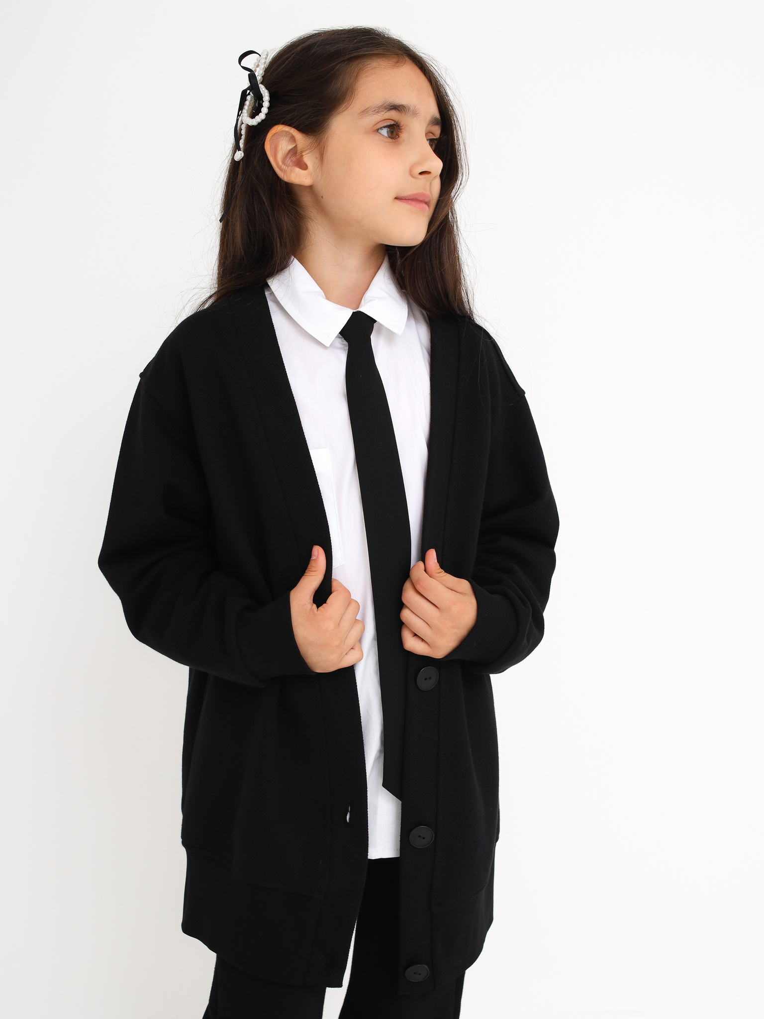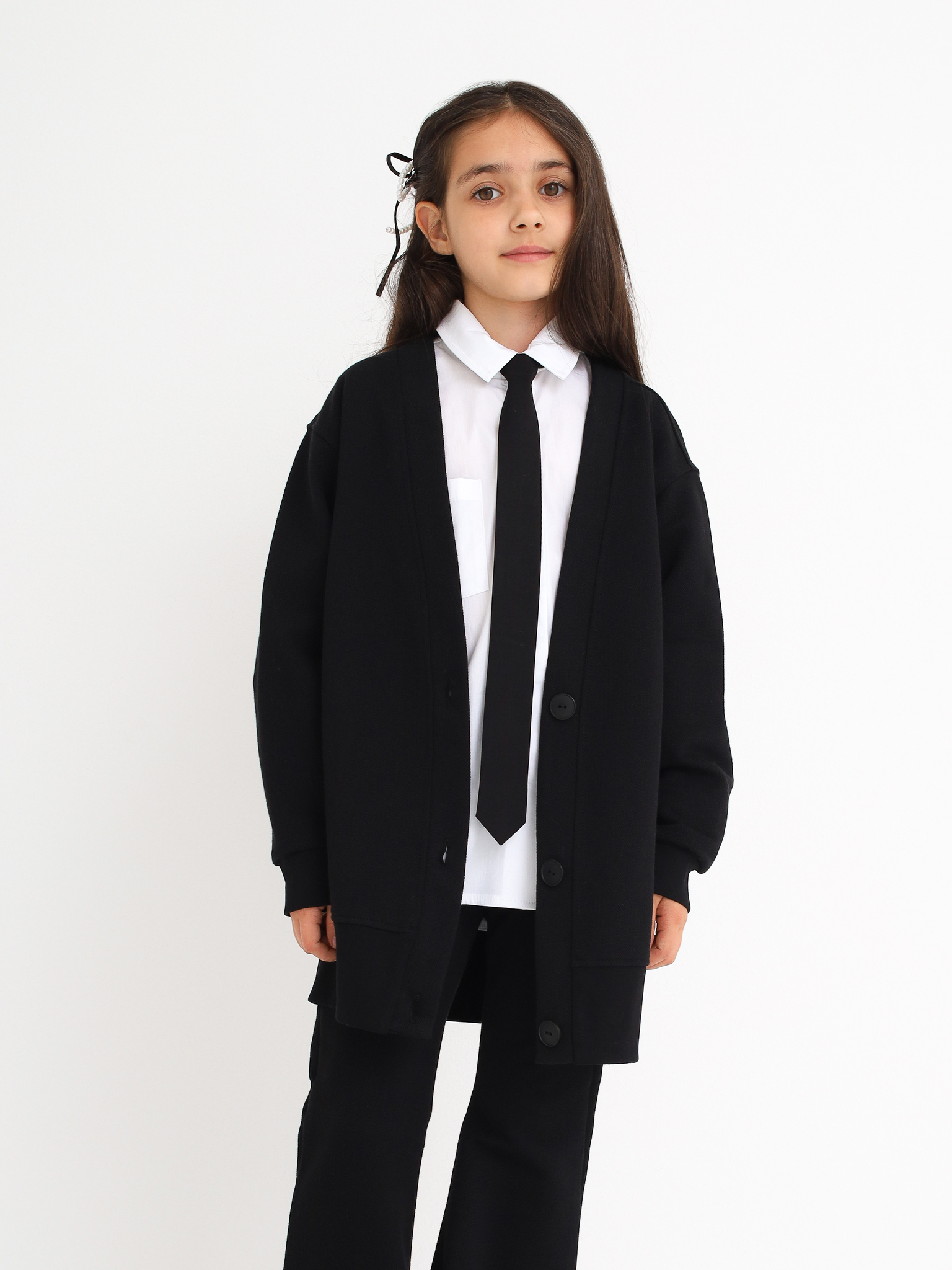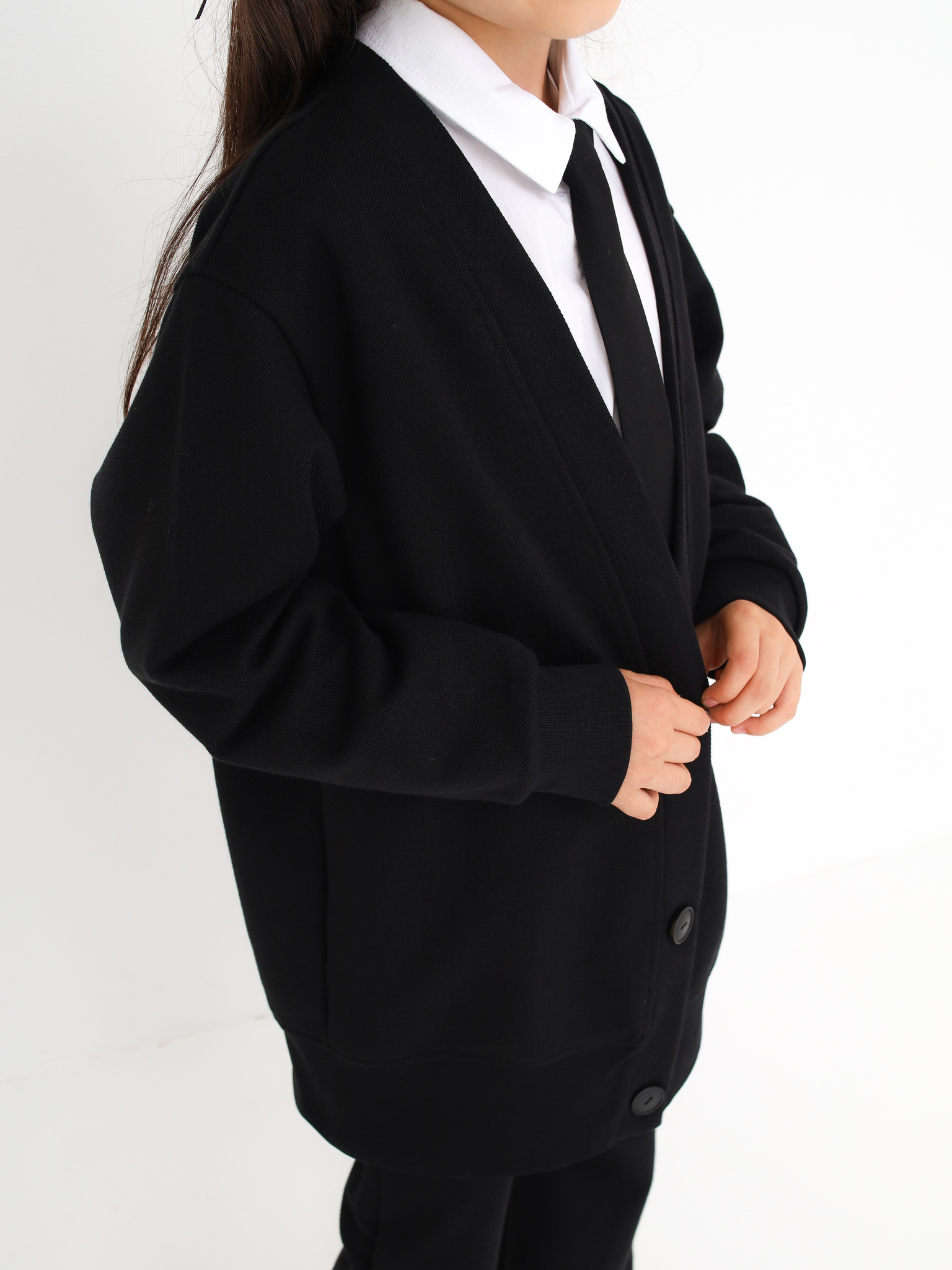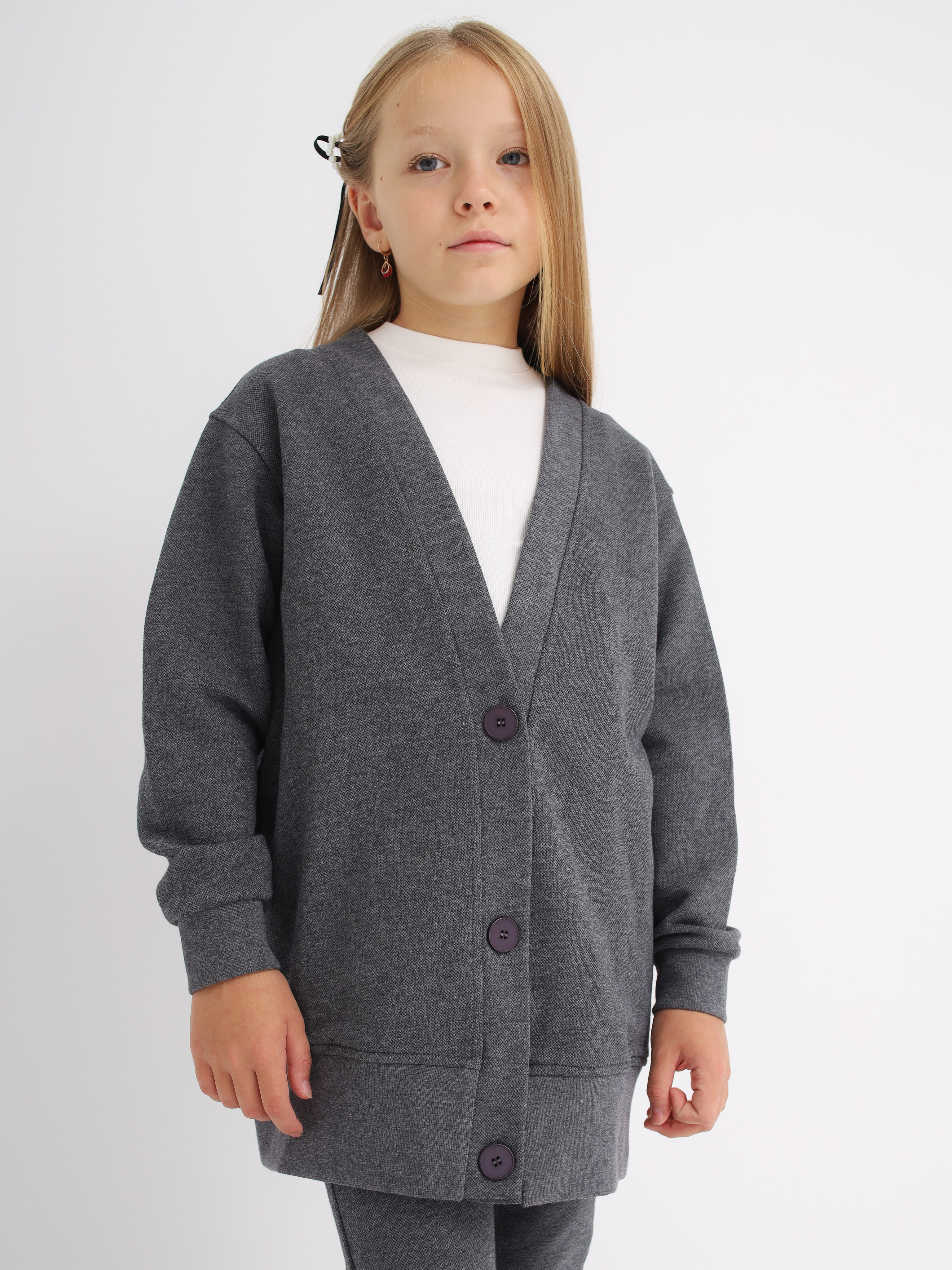 Трикотажный кардиган для девочки на пуговицах. Прекрасно дополнит школьные образы. Выполнен из текстурированного трикотажа пике.