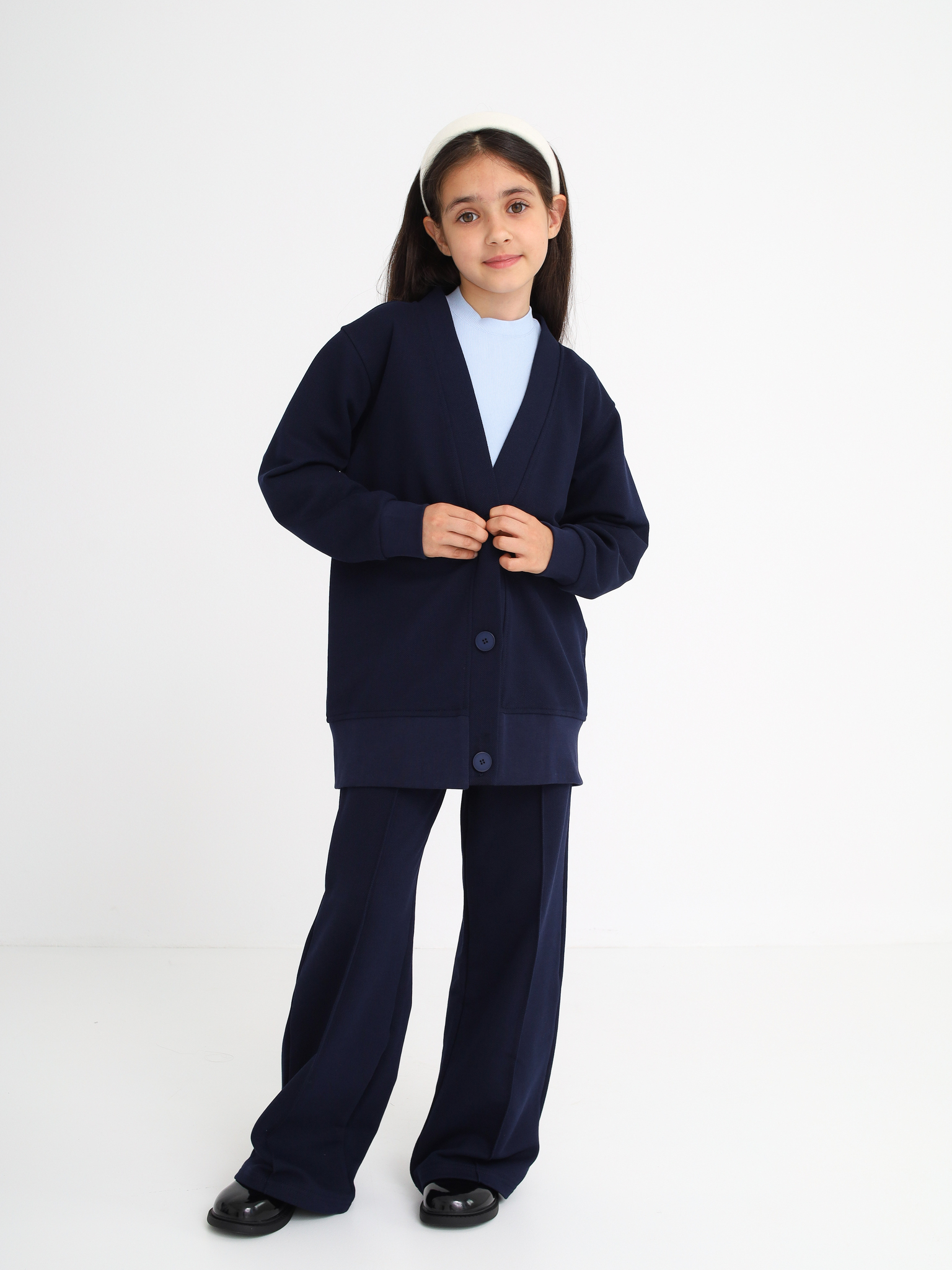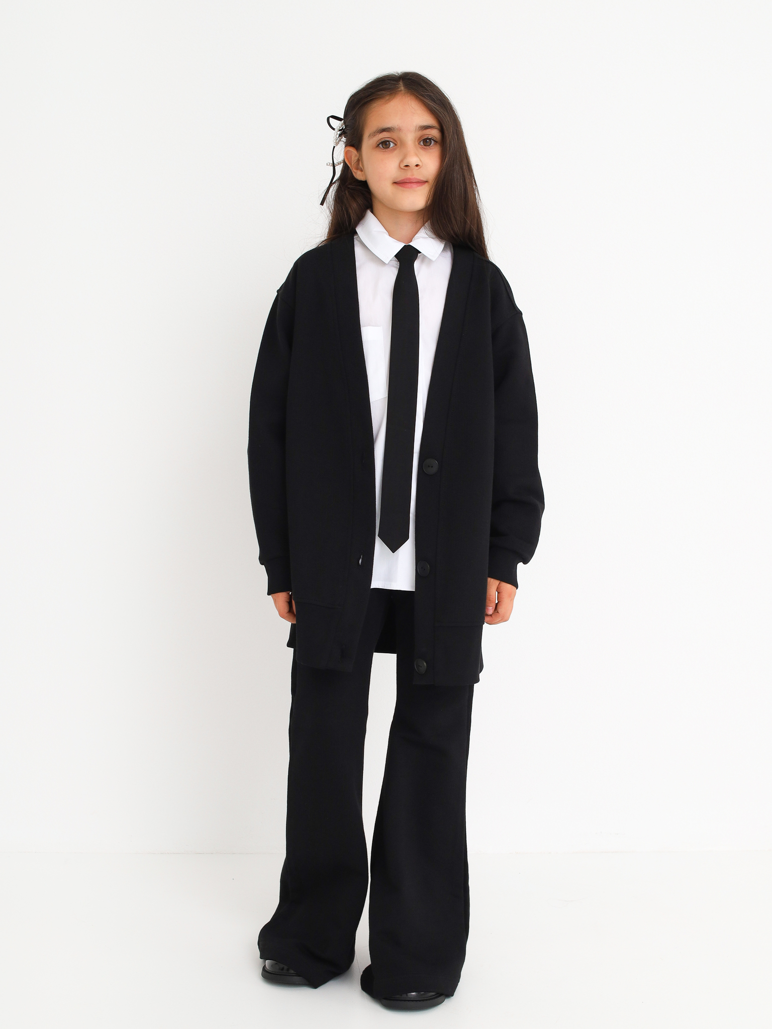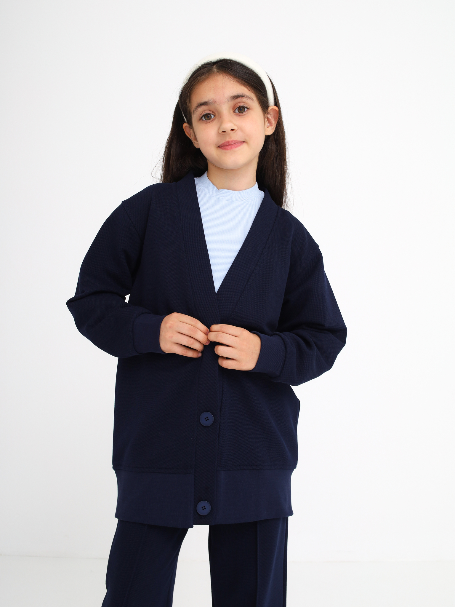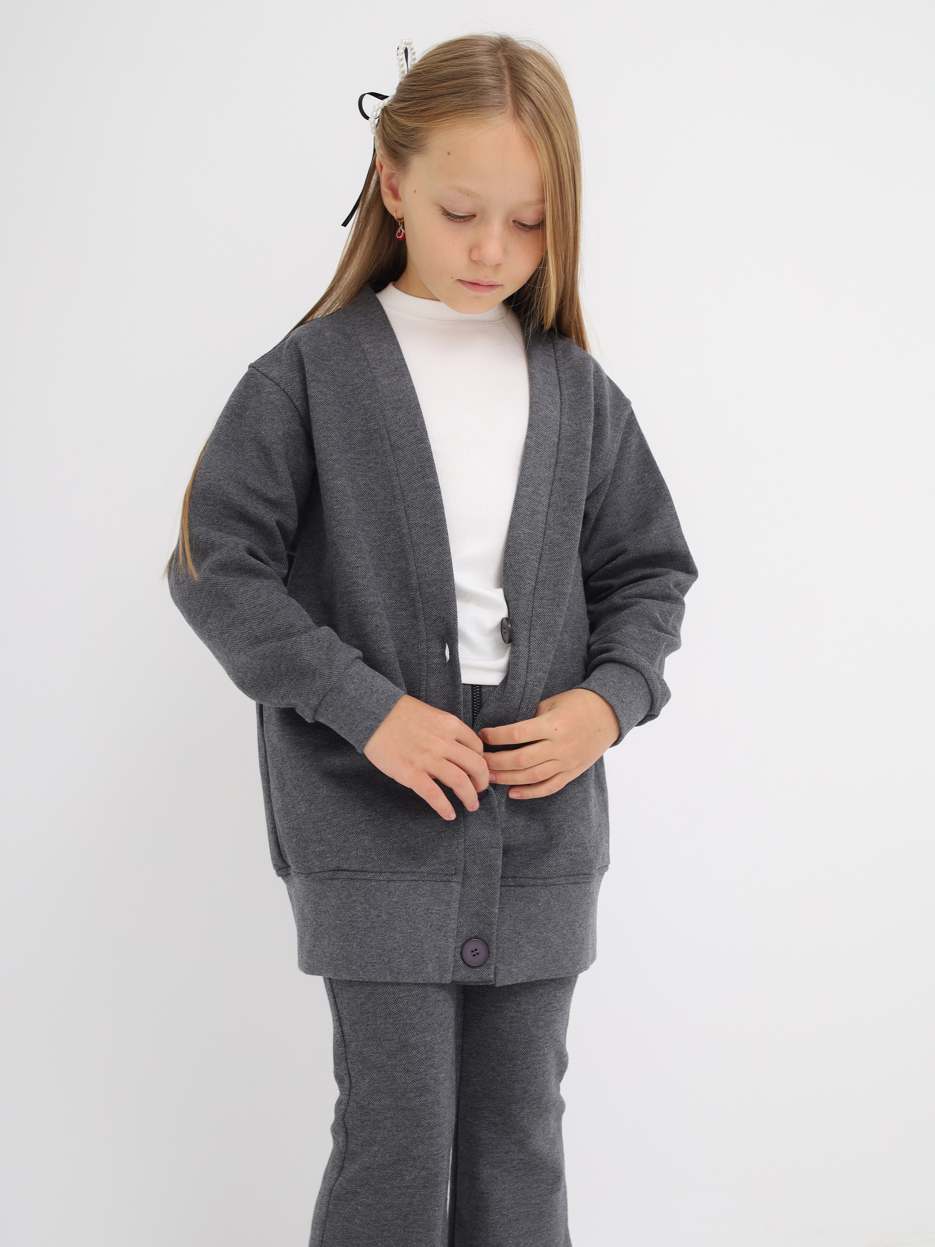 Трикотажный кардиган для девочки на пуговицах. Прекрасно дополнит школьные образы. Выполнен из текстурированного трикотажа пике.