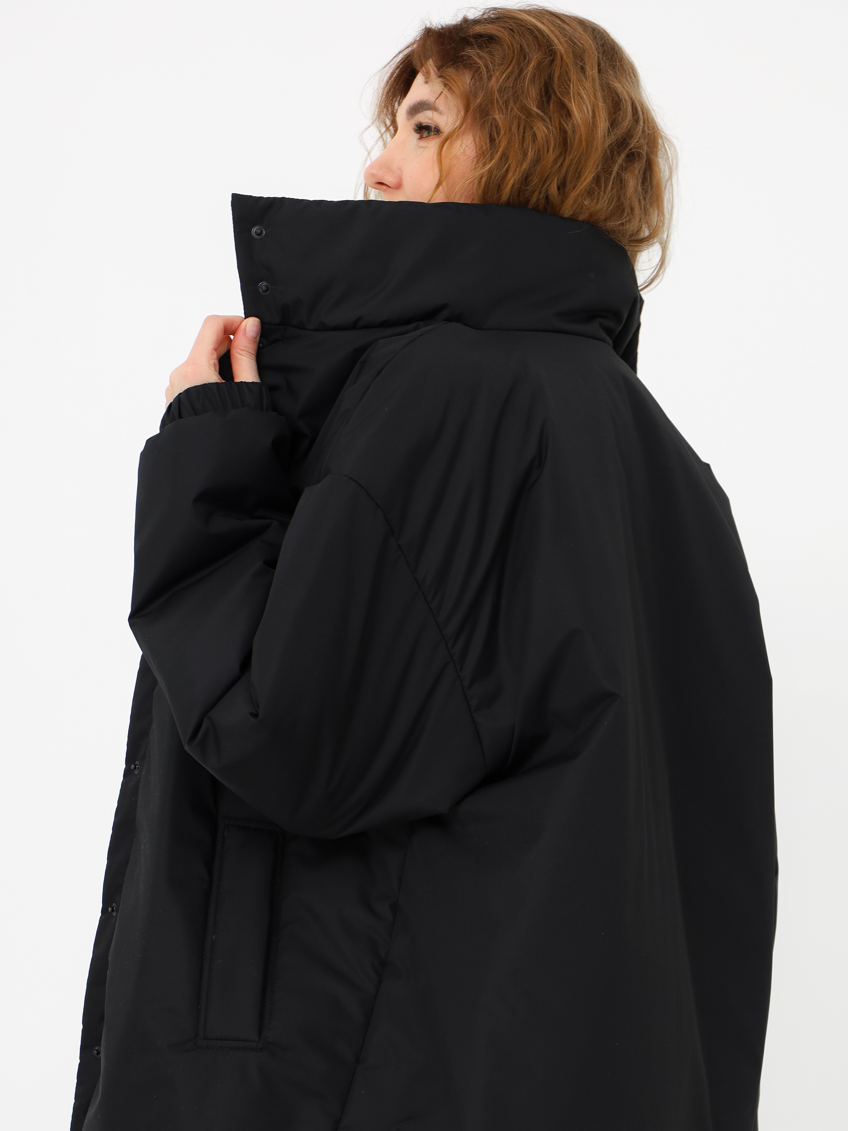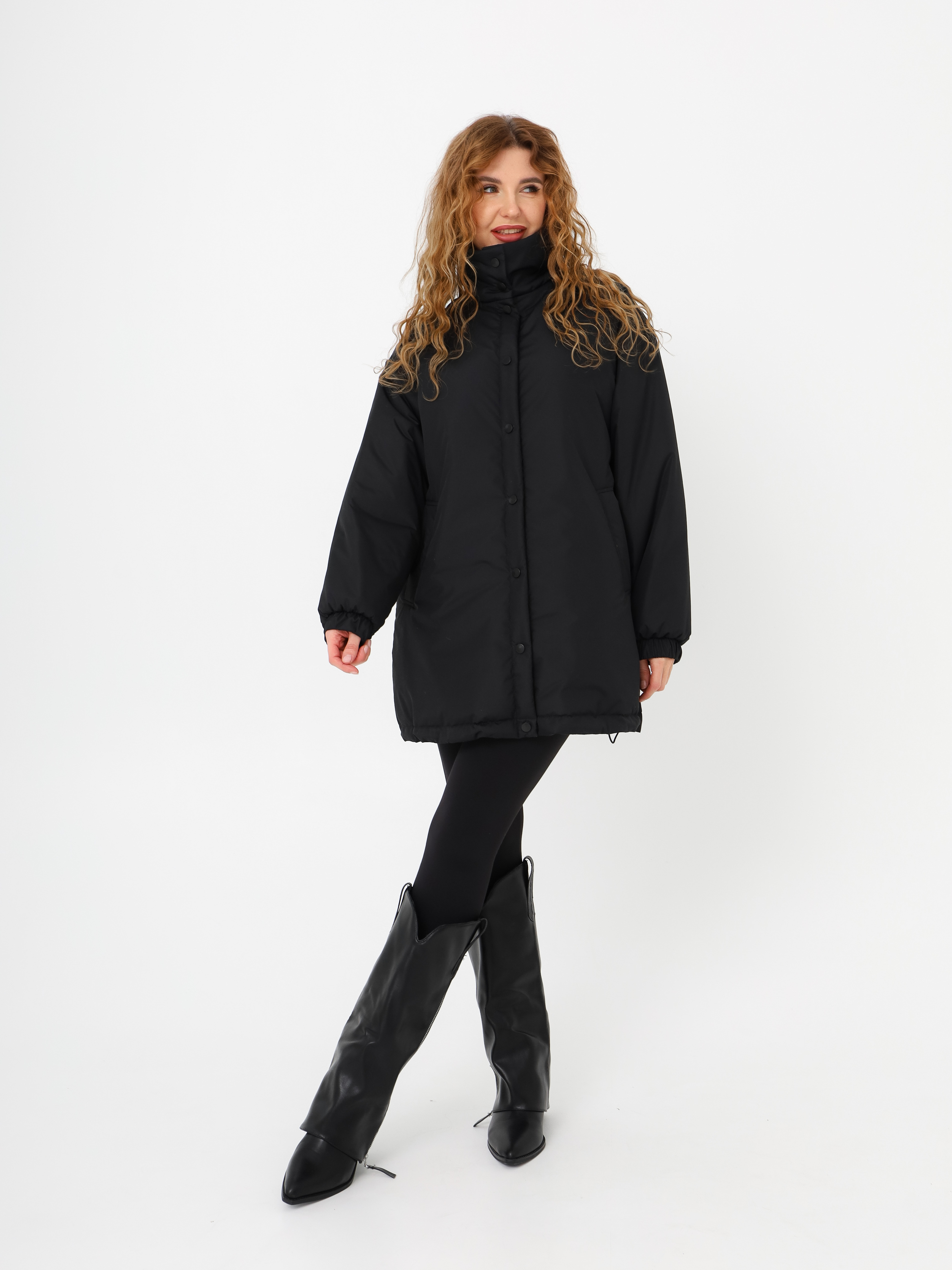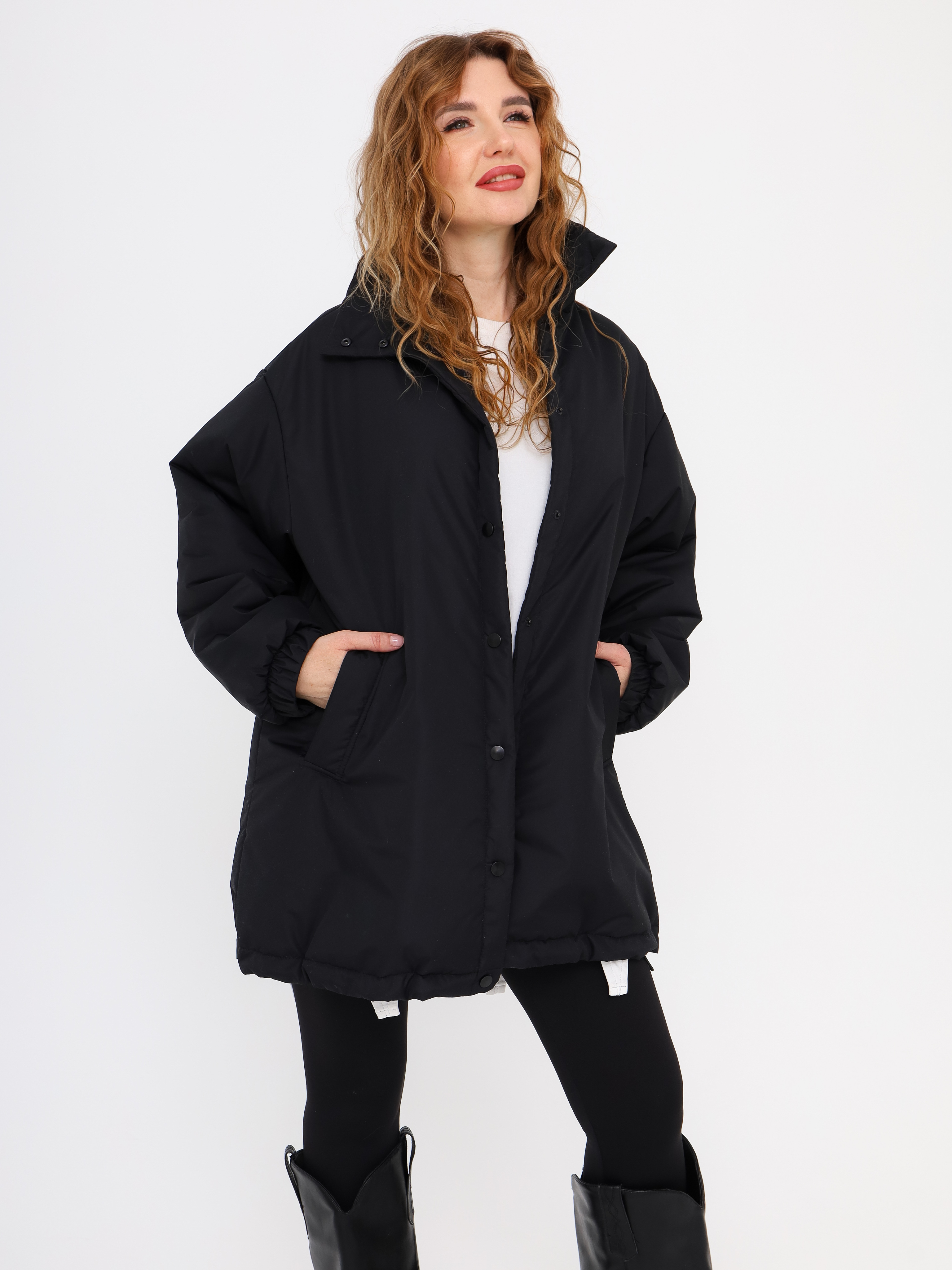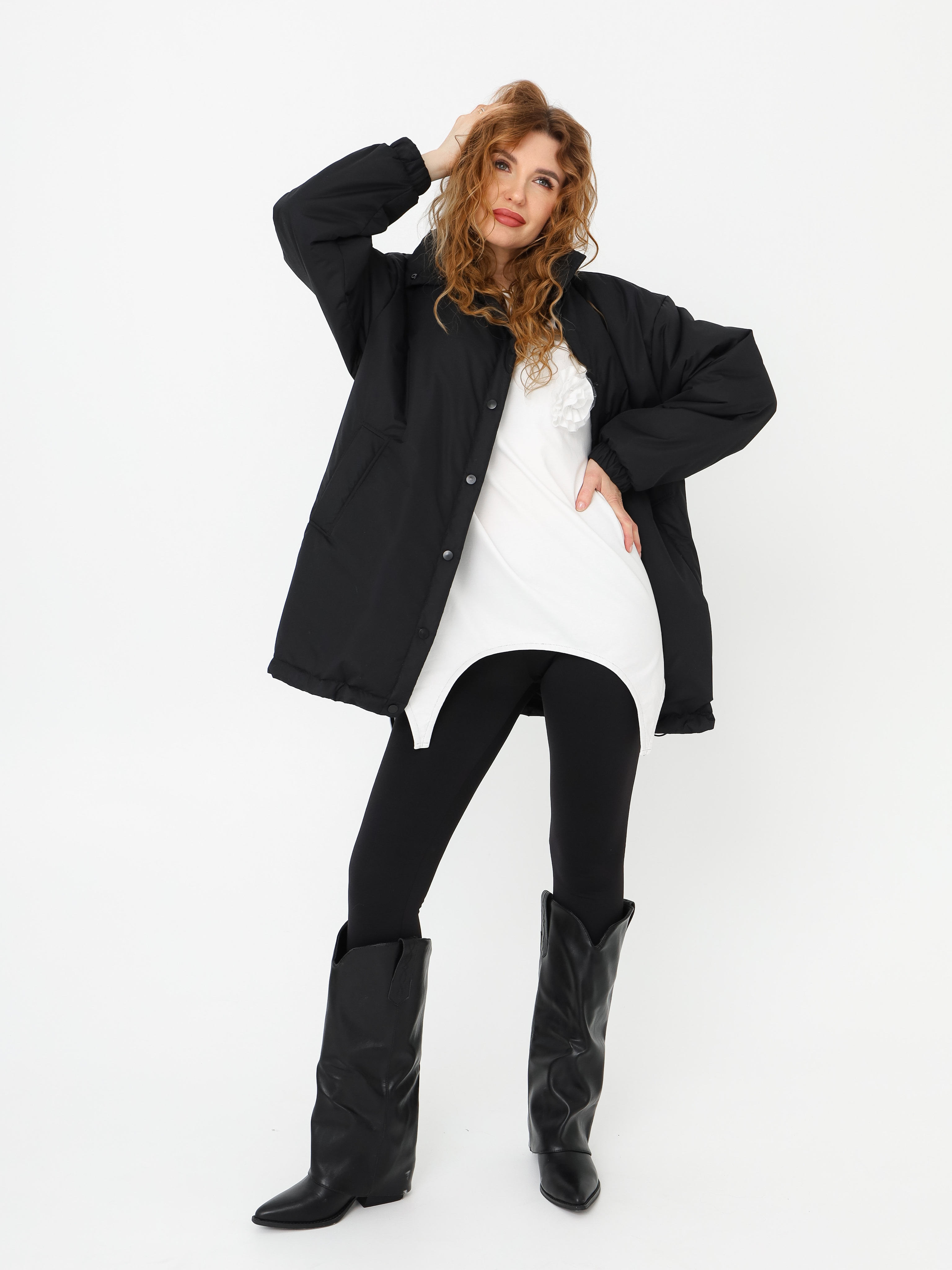 Объемная лаконичная куртка-рубашка на кнопках. По низу на утяжке. Температурный режим от -5 до -+10 градусов.