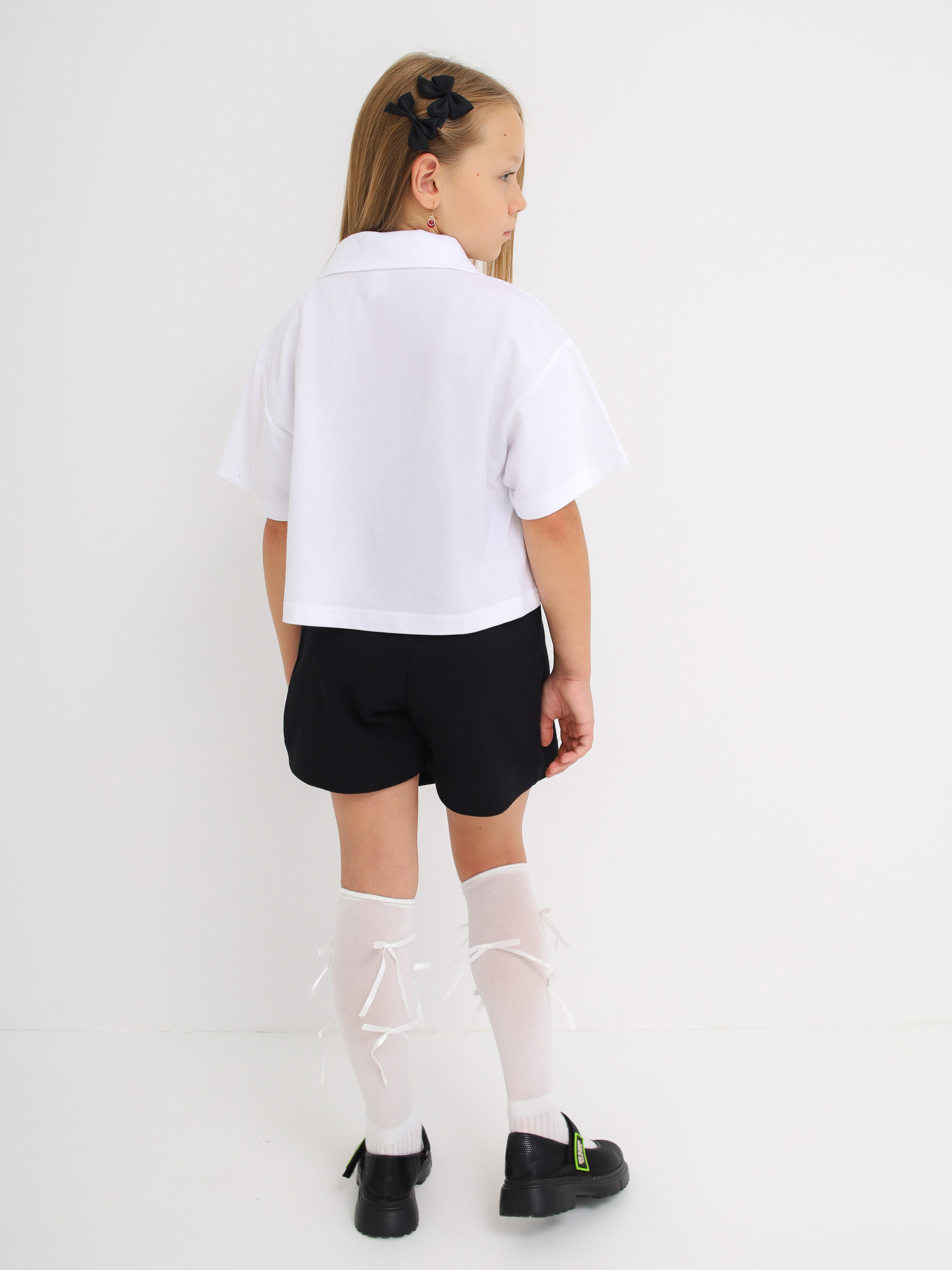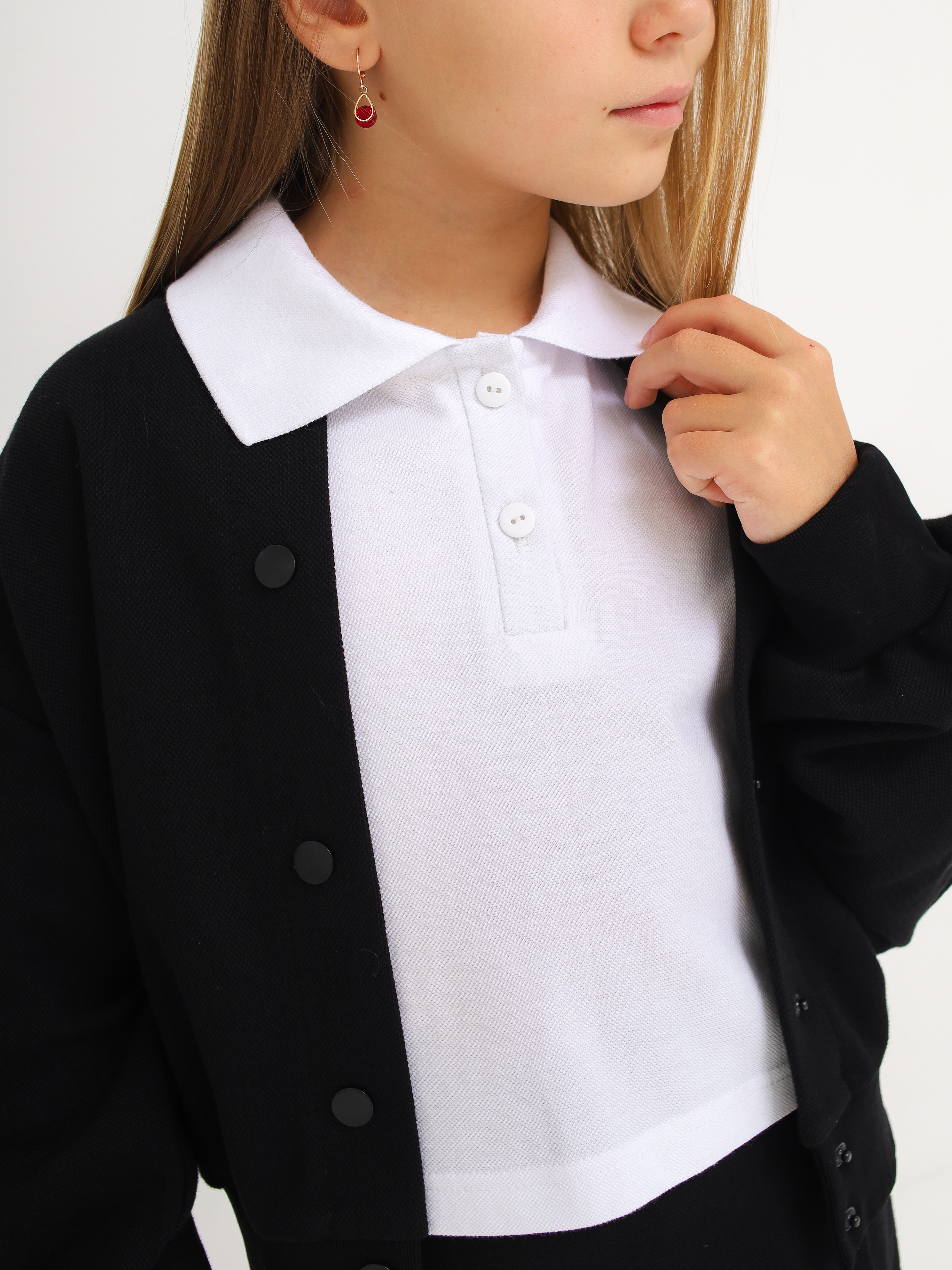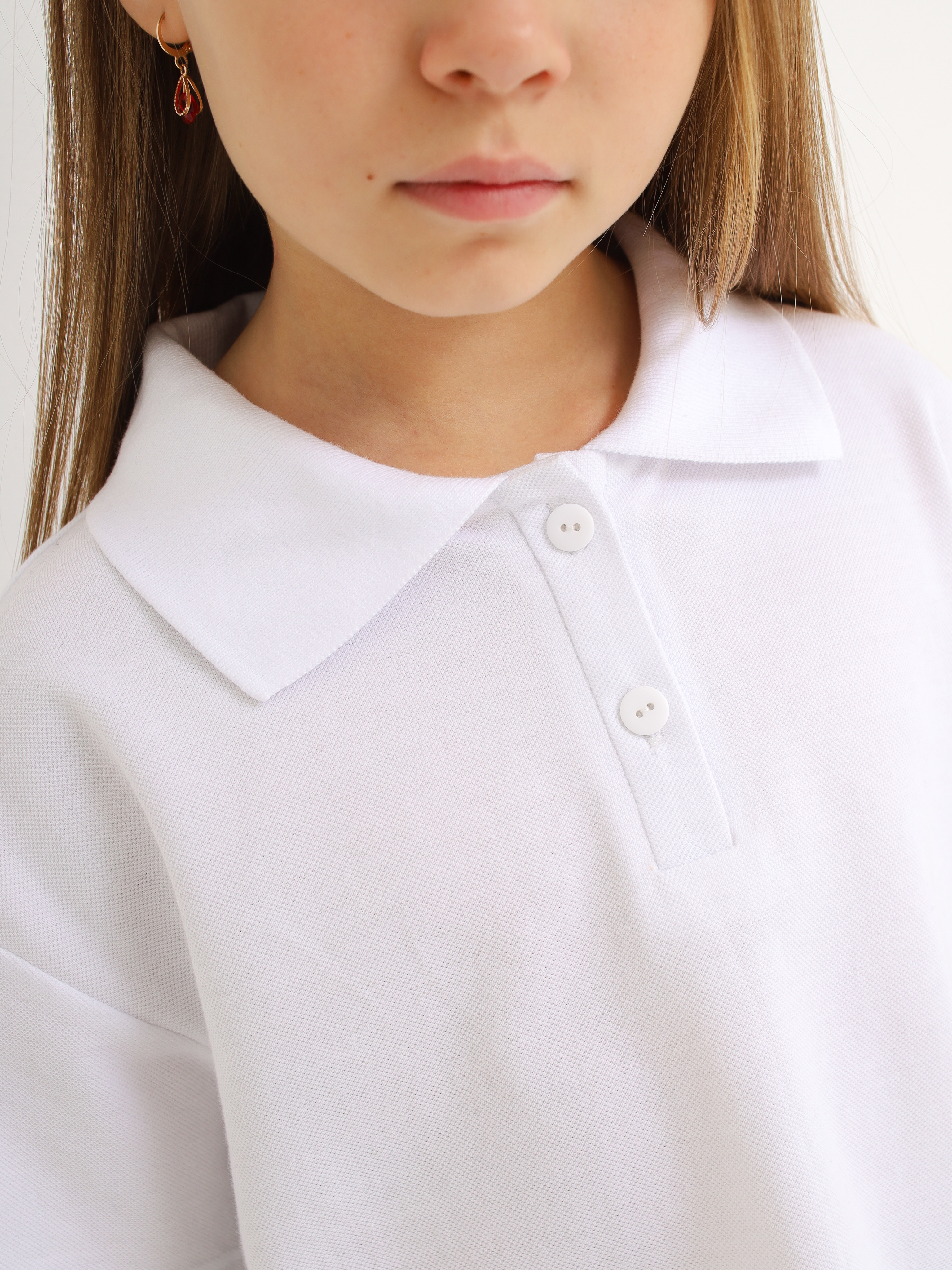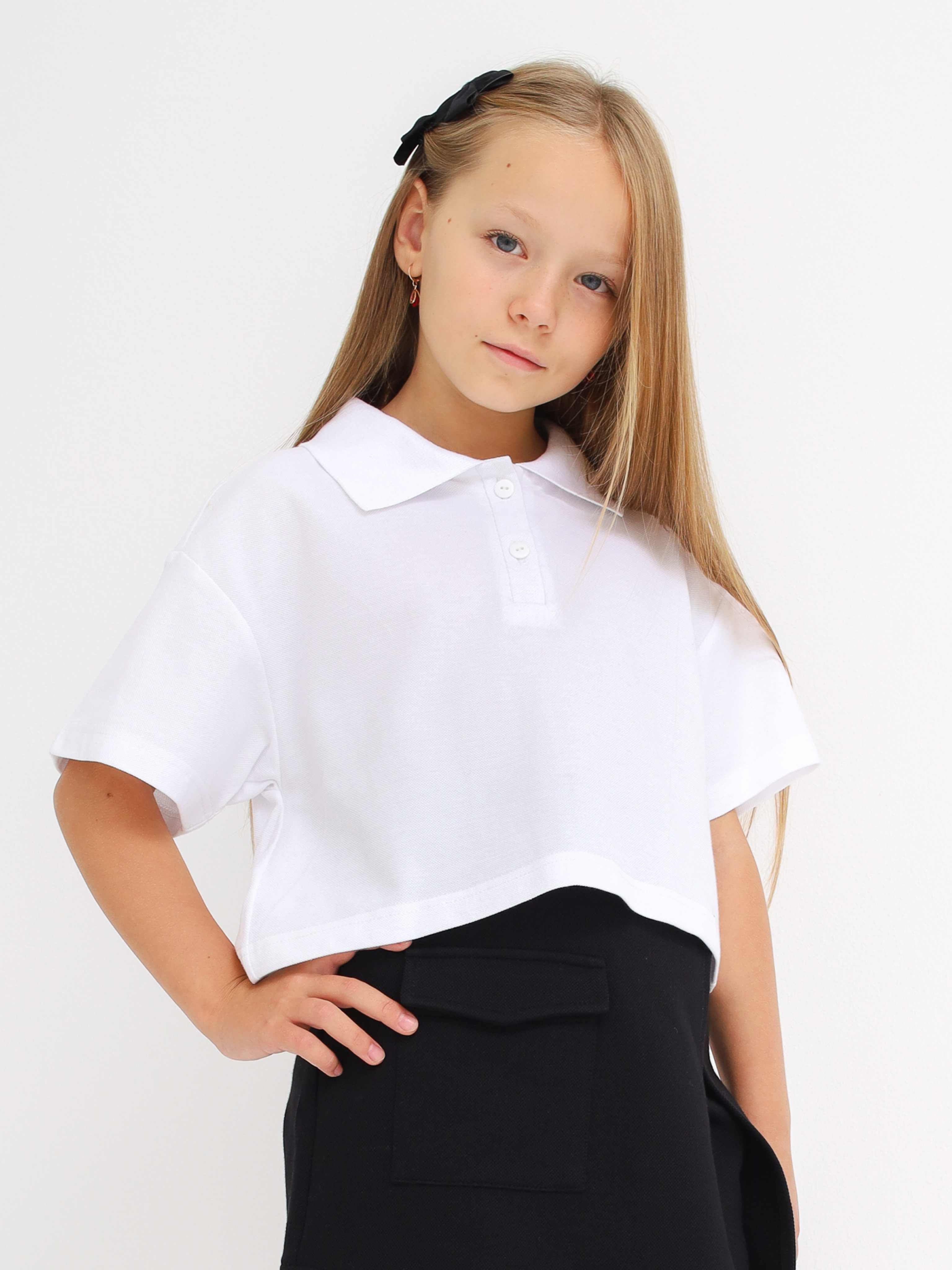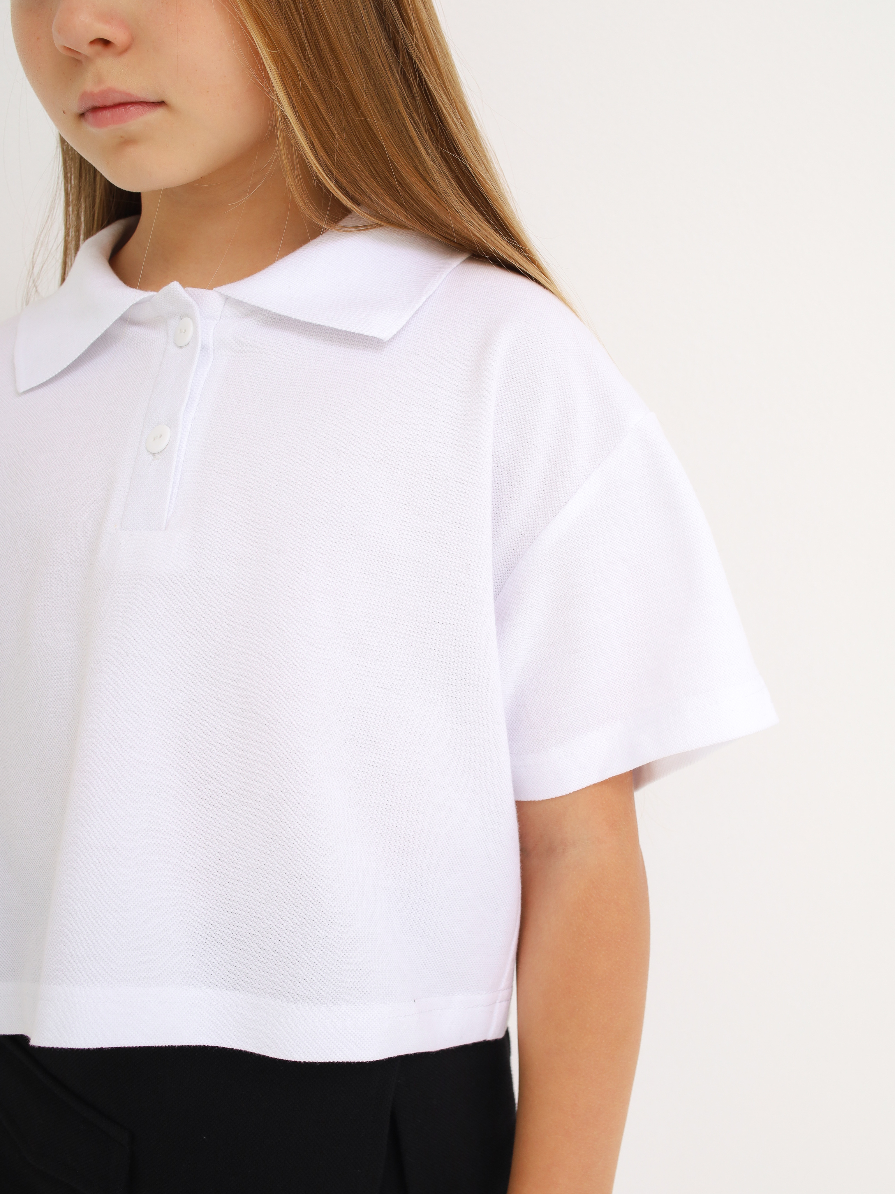 Укороченное поло из трикотажа пике. Стильное, лаконичное, на пуговках. Выполнено из мягкого хлопкового текстурированного трикотажа.