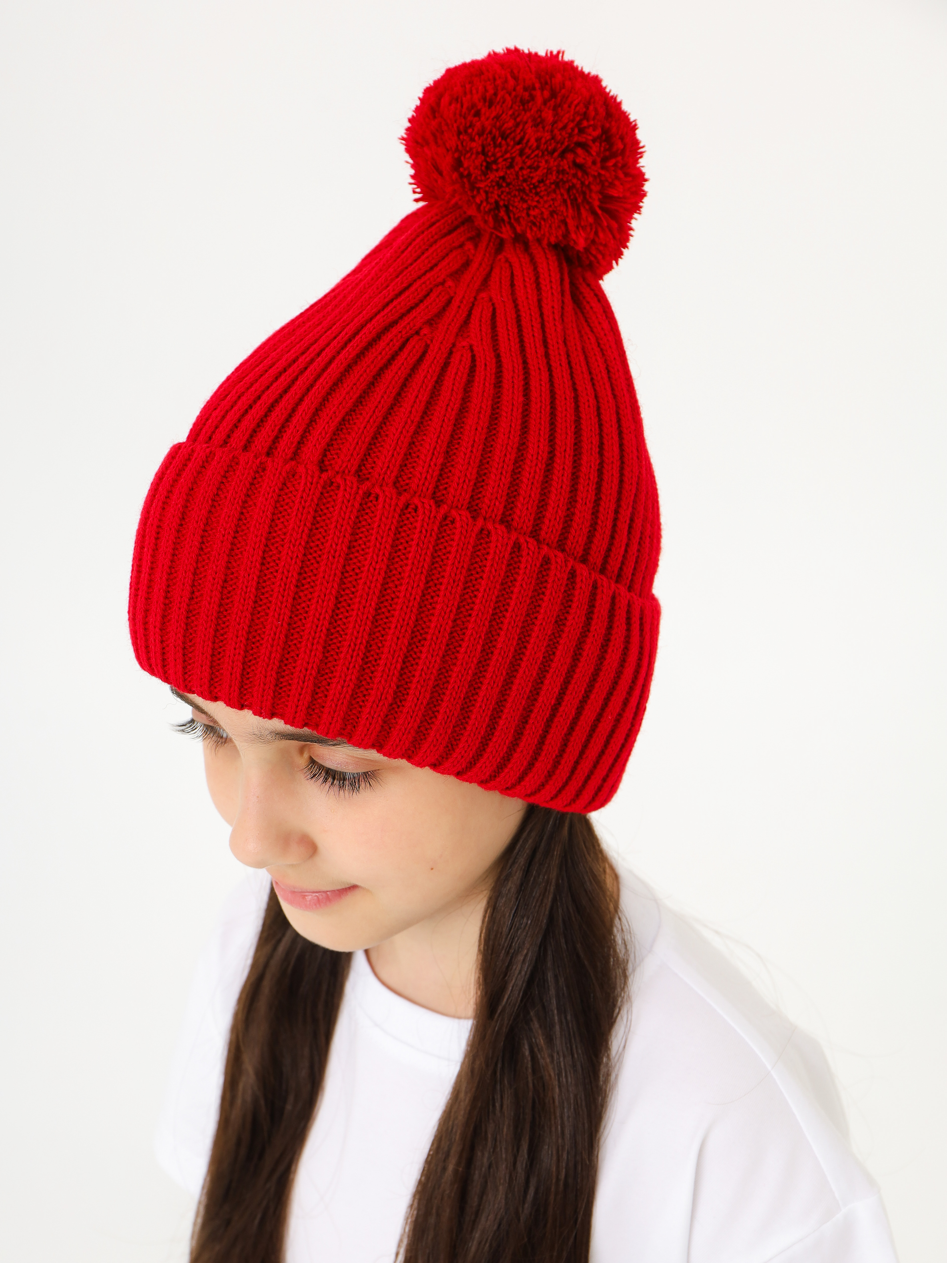 Шапка зимняя с помпоном, красная
