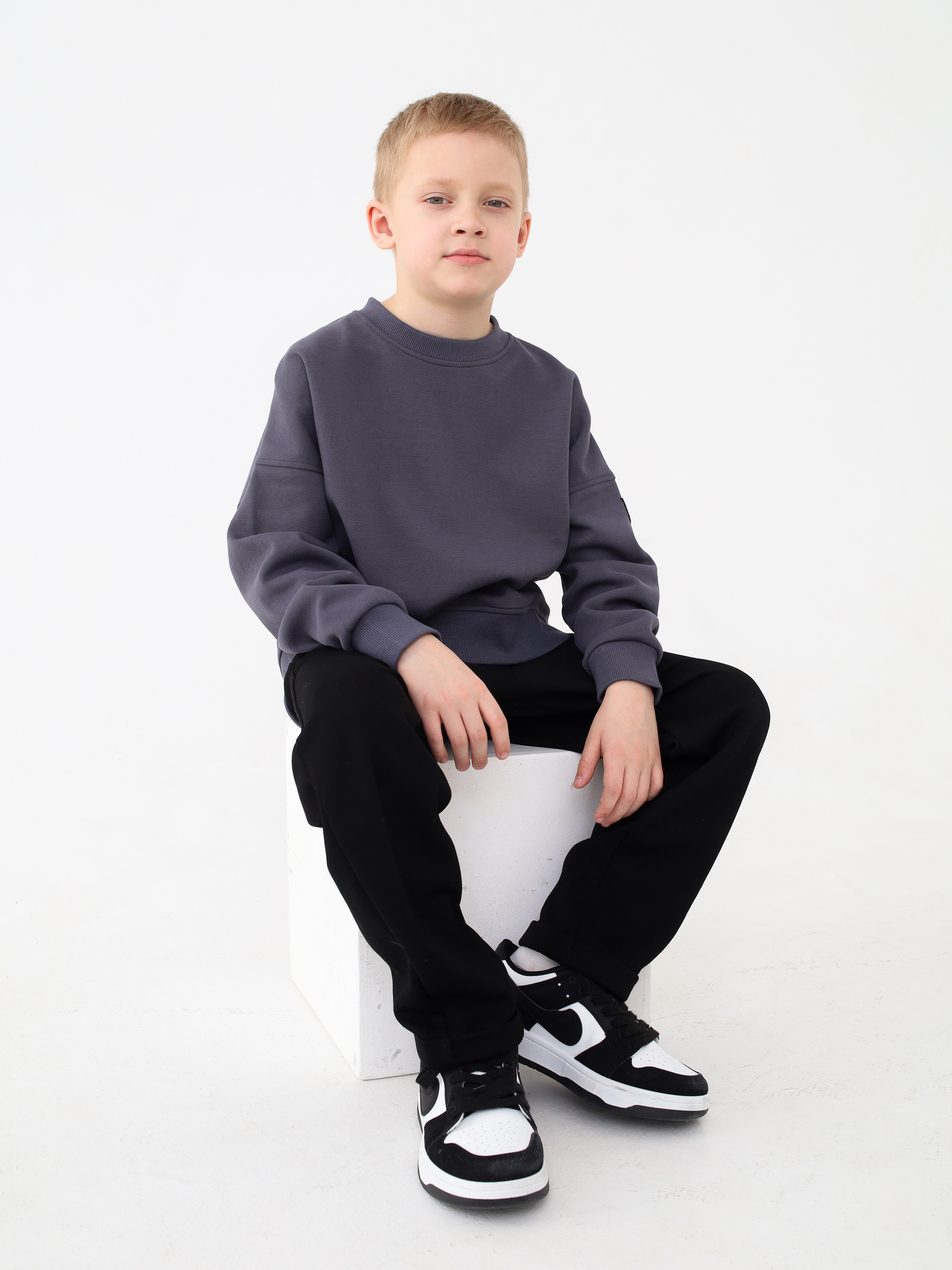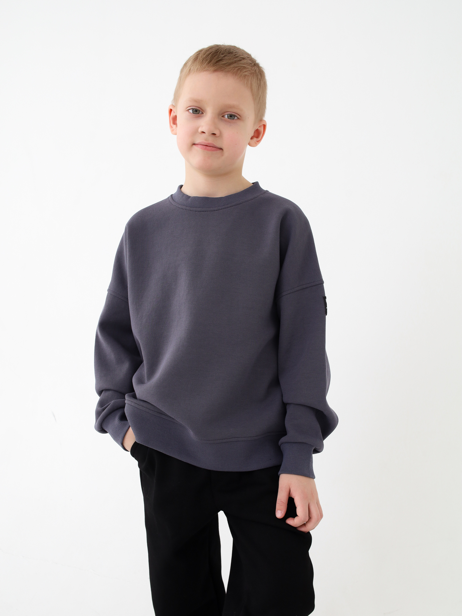 Базовый свитшот свободного кроя. Отлично подойдет как для школы, так и в повседневной жизни. Достаточно плотный, но не толстый. А натуральный состав подарит комфорт и удобство.